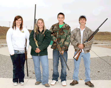 <p>Champion 4-H trap shooters Jacqui White, Kasye Housman, Zack Bauer and Logan Godlewski at the Berthoud Gun Club.</p>