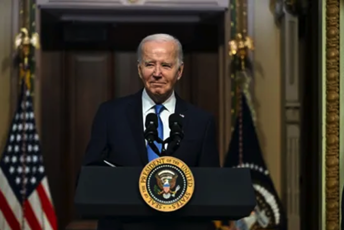 US President Joe Biden speaks at a meeting of the National Infrastructure Advisory Council, in the Indian Treaty Room of the White House in Washington, DC, on December 13, 2023. (Photo by Jim WATSON / AFP)